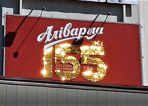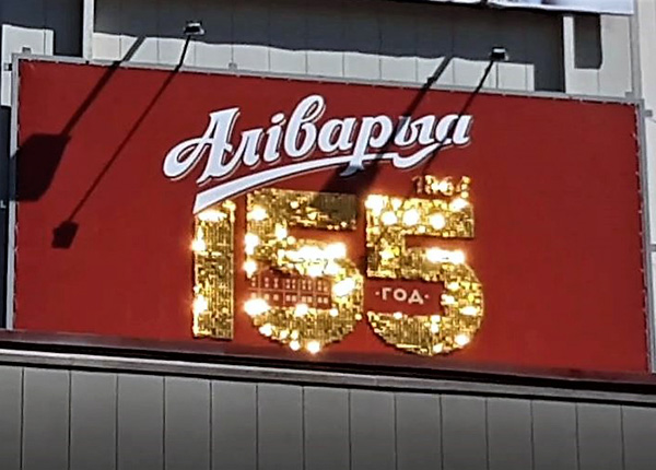 В юбилейный год 155-летия ОАО «Пивоваренная компания Аливария» мы изготовили накладные элементы для фасада здания из динамических панелей в цвете "золотой слиток".