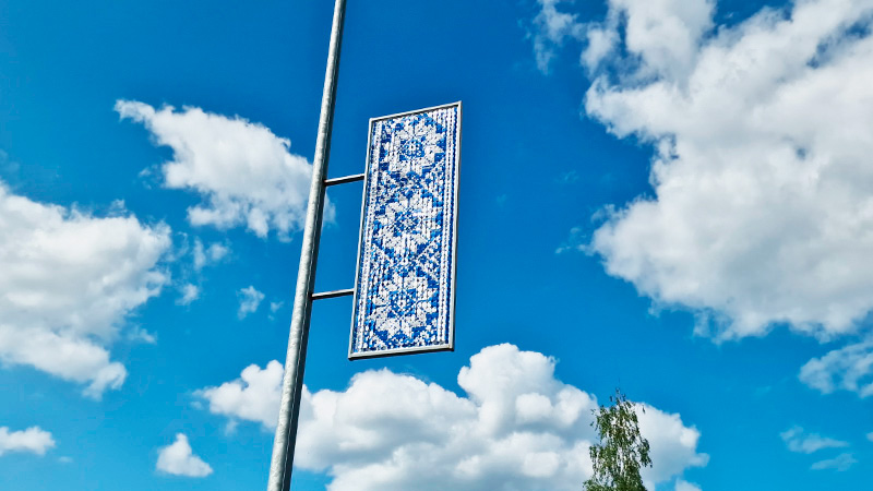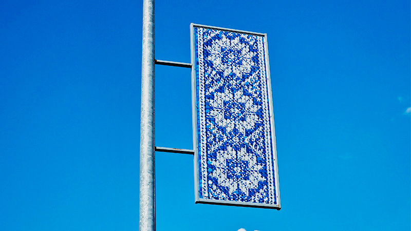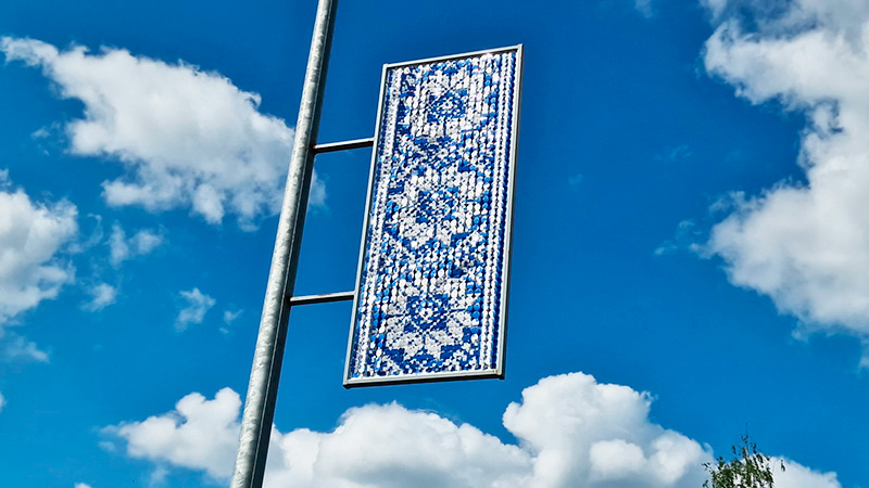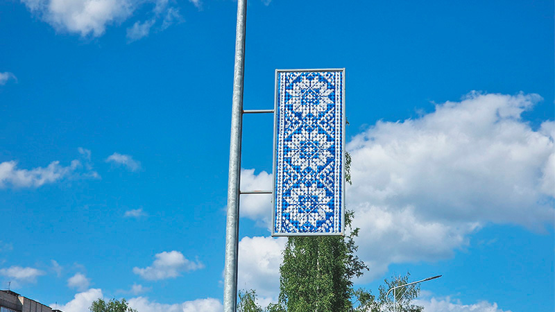 Яркие динамические панно с национальным белорусским орнаментом со стилизованным васильком уже украшают несколько городов нашей Республики Беларусь.Сейчас они размещены в г. Минске и г. Осиповичи. Но вы можете заказать такие такие динамические панно с символикой вашего города, области, национальными орнаментами разных форм и цветов и для украшения вашего города.