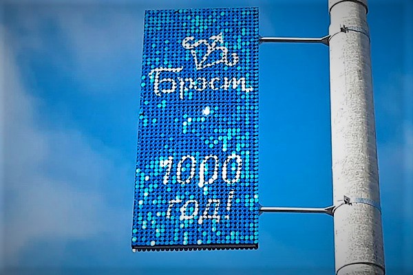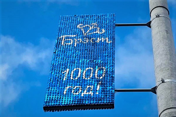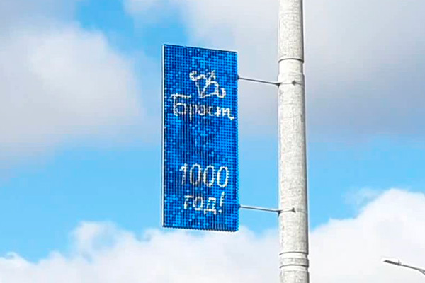 Интересный проект праздничного оформления г. Бреста динамическими панно с изображениями праздничного флага города и национального флага Республики Беларусь.
