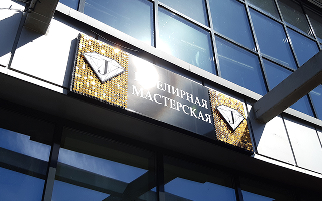 Нашим партнером, минским рекламным агентством, была изготовлена небольшая вывеска для ювелирной мастерской.
